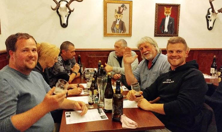 To af foreningens nyere medlemmer, Lennart og Jesper (forrest i billedet) har fået frie rammer til at banke en smagning på benene. Så glæd dig til "Øl med tilføjelser".