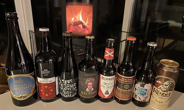 "Foråret og de lysere tider er så småt på vej, men det skal ikke stoppe os i at holde en smagning med fokus på de øl, som gør sig særligt godt ved kaminens varme i en kold og mørk tid. Martin har fundet nogle spændende øl, hvor de mørke ristede malte dominerer, eller hvor en høj alkohol styrke gi’r varme og røde kinder. I kan godt glæde jer - det bli’r helt sort!"