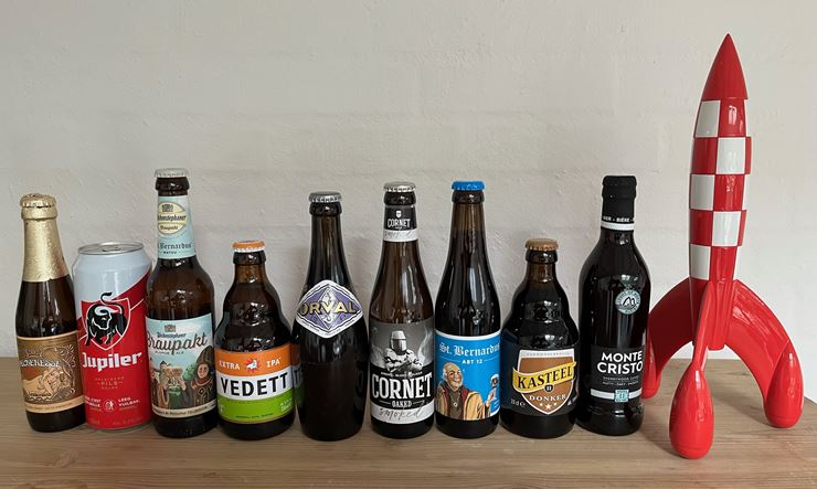 Frank havde, “on location”, i Belgien, indkøbt 9 forskellige belgiske øl fra forskellige stilarter.