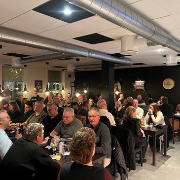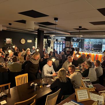 Aftenen blev afsluttet med en lækker fællesspisning, hvor vi nød Wienerschnitzel med kartofler, grønærter og smørsovs. Officielt sluttede arrangementet omkring kl. 20, men de standhaftige fortsatte lidt endnu på Guldkronen.