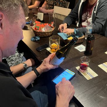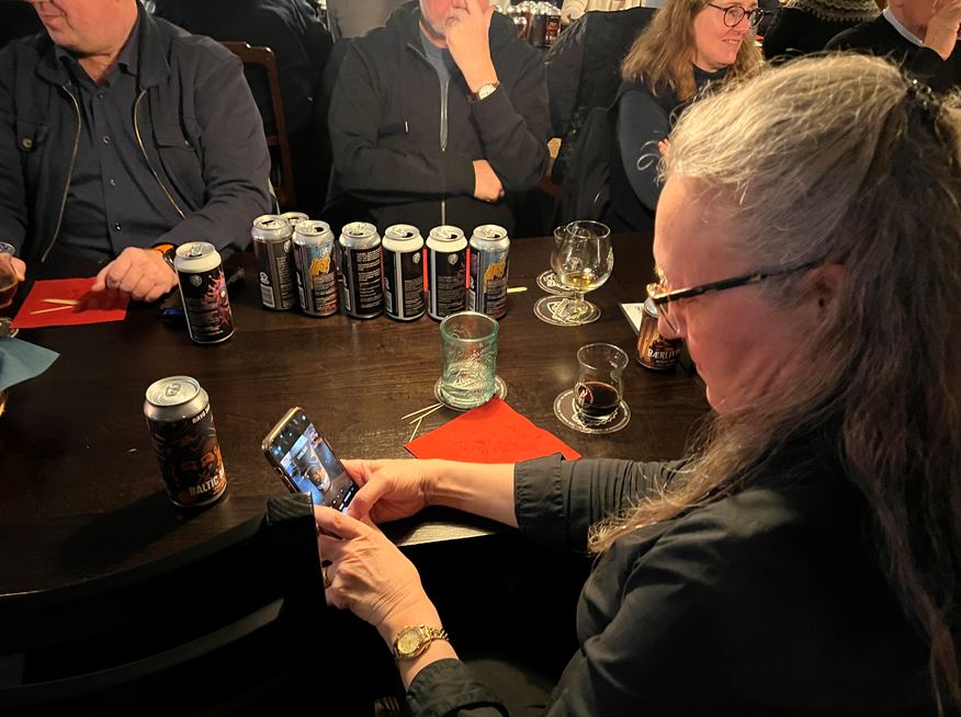 Udover at vi smagte på de 12 øl, så lyttede mangt en deltager til Jespers råd, om at nyde en øl drink bestående af BærLiVine og Den Sidste Olie – kan godt anbefales.