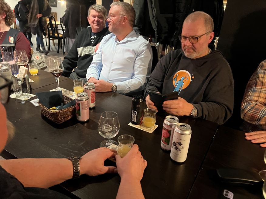 Herefter var der en lille pause i smagningen, hvor Robert fik startet en debat om øl på restauranter. Vi står stadig et sted, hvor mange restauranter ikke har et ret bredt eller spændende udvalg, og ofte har de slet ikke et ølkort. De fleste var enige om, at det måske kunne hjælpe, hvis man efterspurgte et ølkort ved bordbestilling, så der kan ses en efterspørgsel.