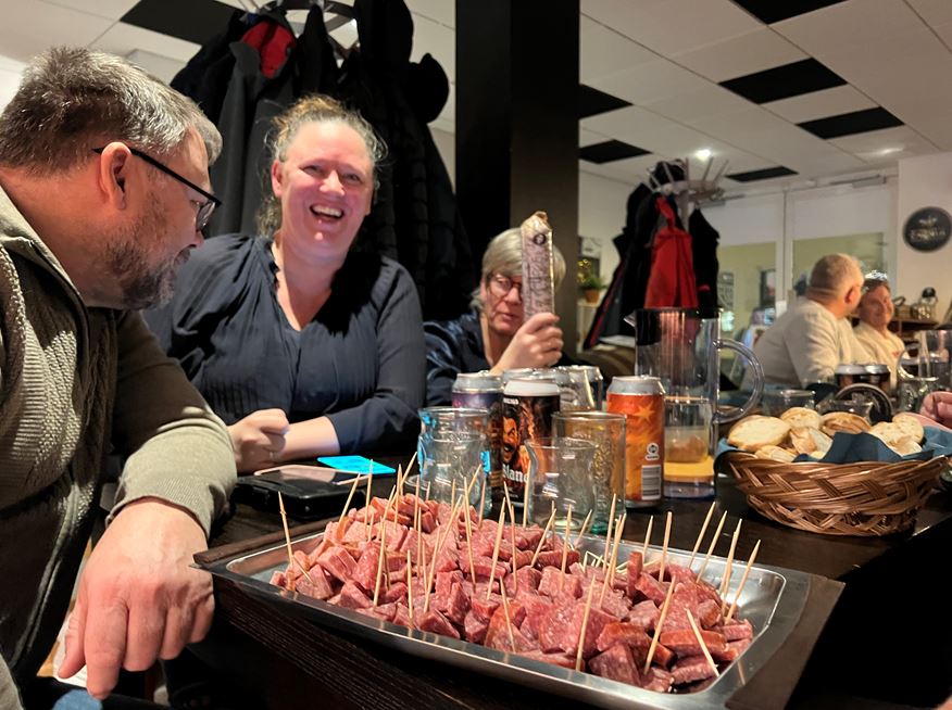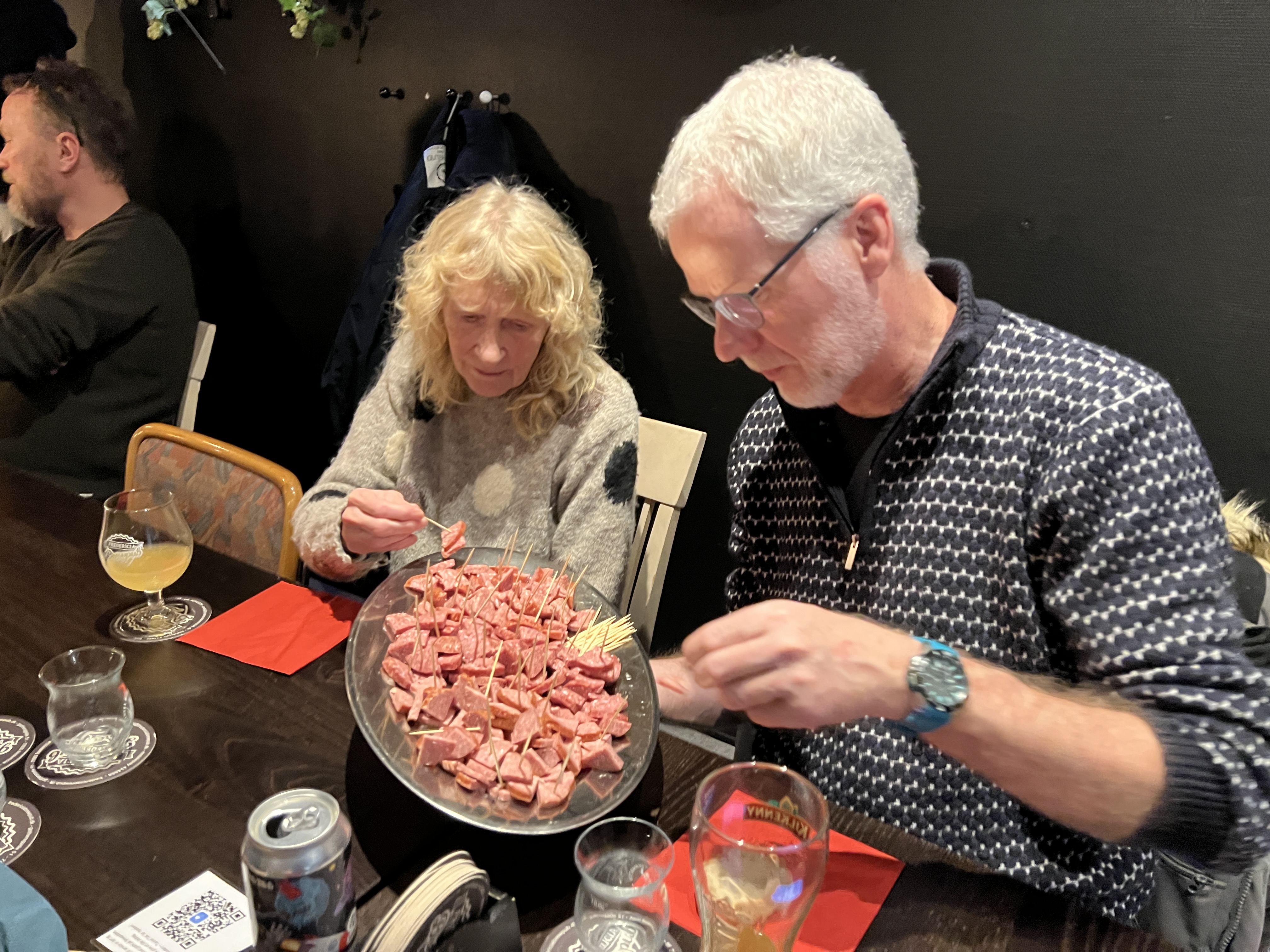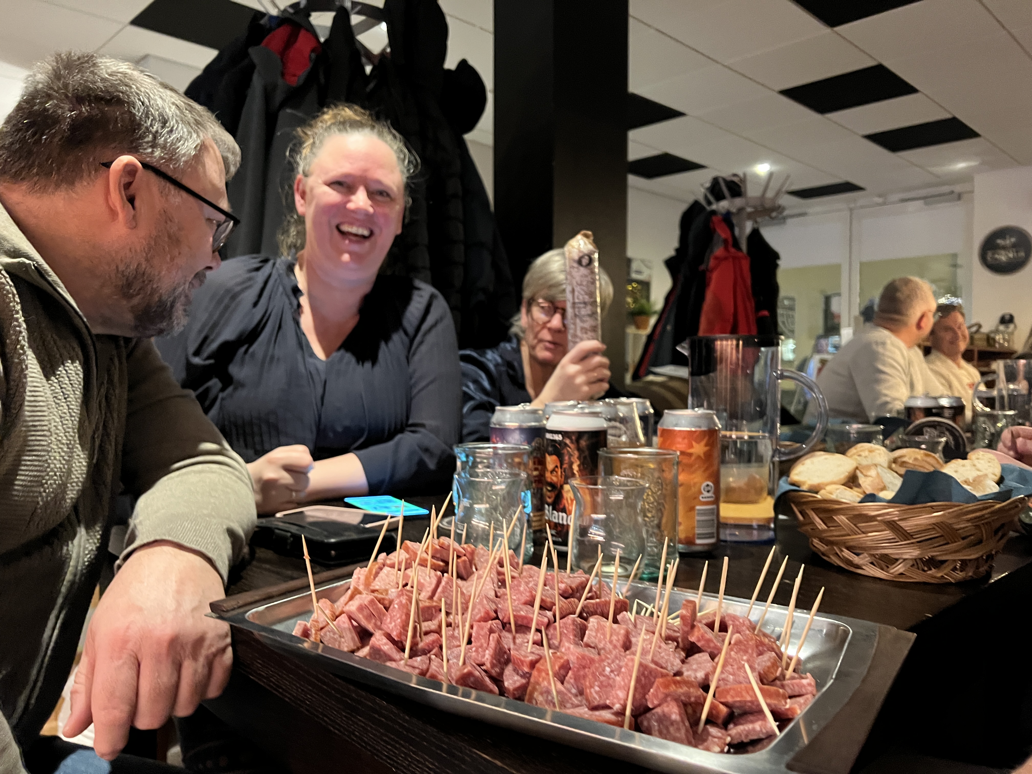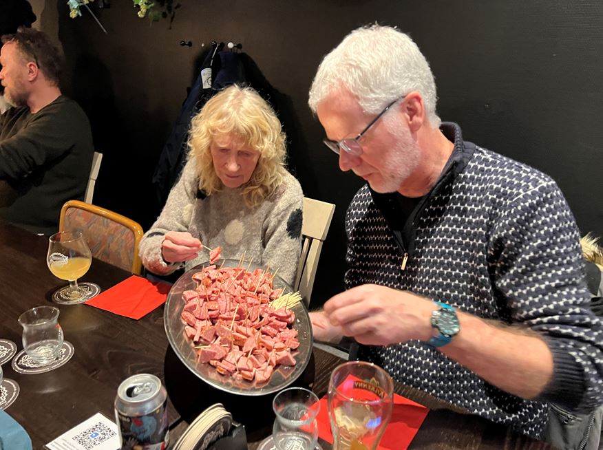 Stedet er som bekendt en tapas restaurant (med 24 forskellige tapas retter), og der blev derfor serveret en særdeles velsmagende tapas menu, der blev ledsaget af husets pilsner.