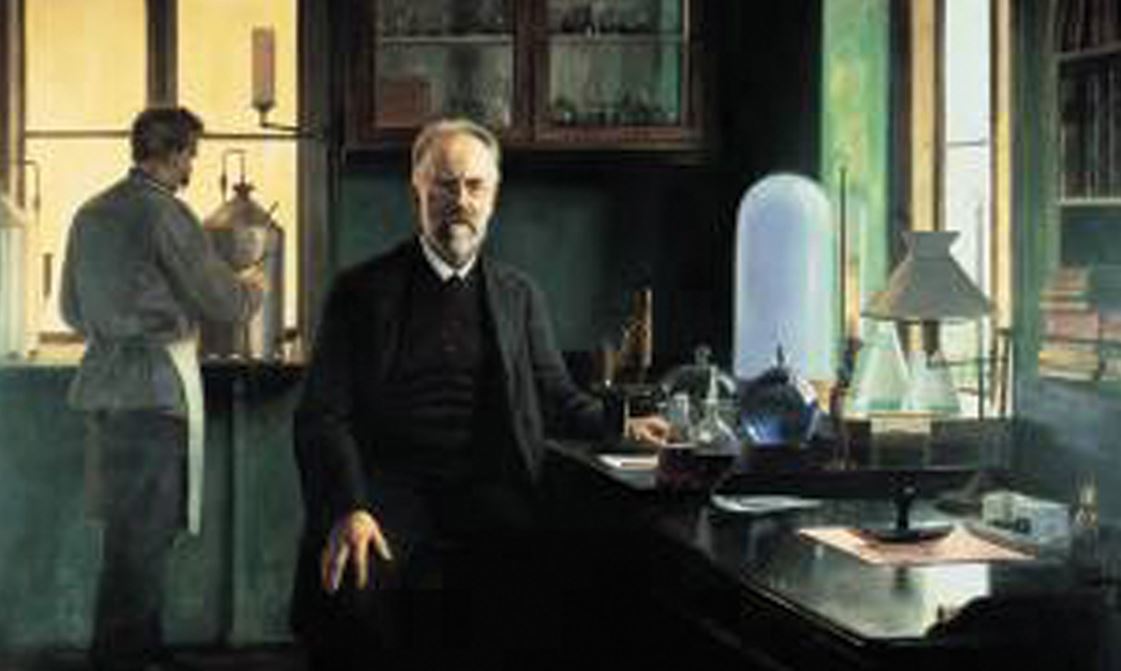 Billedtekst: Emil Chr. Hansen i Carlsbergs laboratorium, maleri af Otto Haslund, 1887.