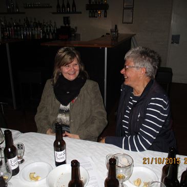 De havde medbragt 5 øl til smagningen samt et udvalg af dejlige oste og brød. ”Far” fortalte om de forskellige øl, og baggrunden for at de var startet som kunstbryggere.