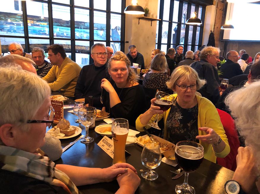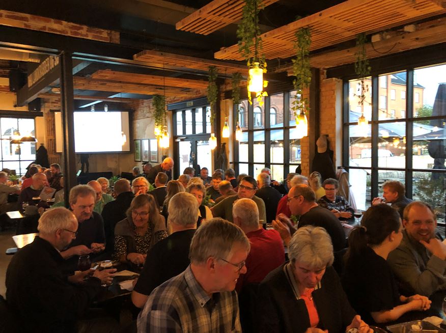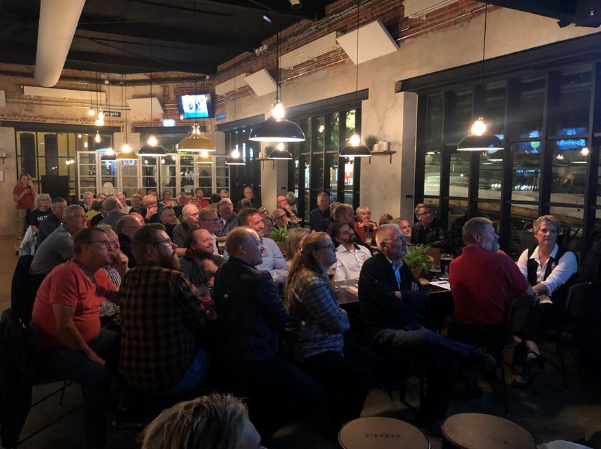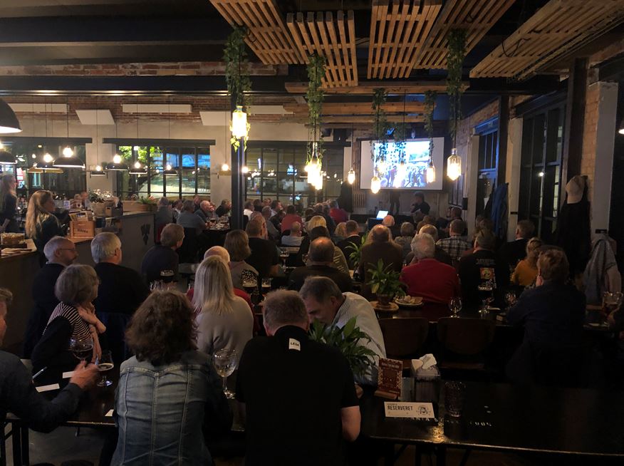 Efter en lille times tid med hyggelig fællesspisning, blev medlemmerne opfordret til at hente en ny fadøl i baren, som lokalbestyrelsen traditionen tro var vært for.